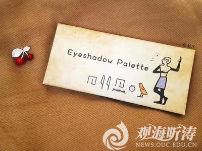 古埃及圣书字形态鲜活、用色大胆,可是这样的美始终是远离大众视野的神秘密码。于是,王梦雅决定用古埃及圣书字来装饰我们生活中的平凡小物。她发现市面上的眼影盘设计大多只是在表面印出品牌LOGO,在看到故宫推出的口红贴纸后,她萌生了设计眼影盘贴纸的想法。她用埃及圣书字设计字样,选取配色,制作成品。于是,眼影盘贴纸、帆布包等文创产品横空出世,新颖的搭配,全新的设计迅速吸引了身边人的目光。带有埃及圣书字的文创产品寓意丰富,新潮却不失内涵,穿越历史时空,向观者絮语。