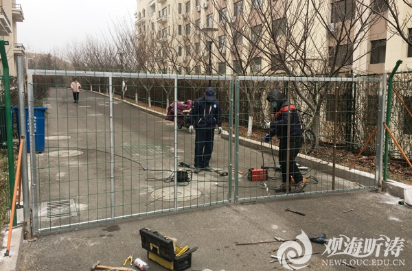 方案虽经确定,但受疫情影响,施工所需的围栏材料紧缺成了一大难题。后勤保障处校园服务中心连夜清点库存,并多方联系供应商,才将材料备齐。在青的维修人员和管理人员共11人全部上阵,自10日中午开始施工,加班加点、中午不休,于11日17时完成北海苑学生生活社区的围栏施工。施工期间,工作人员全程佩戴口罩,严格按照疫情防控工作要求进行作业