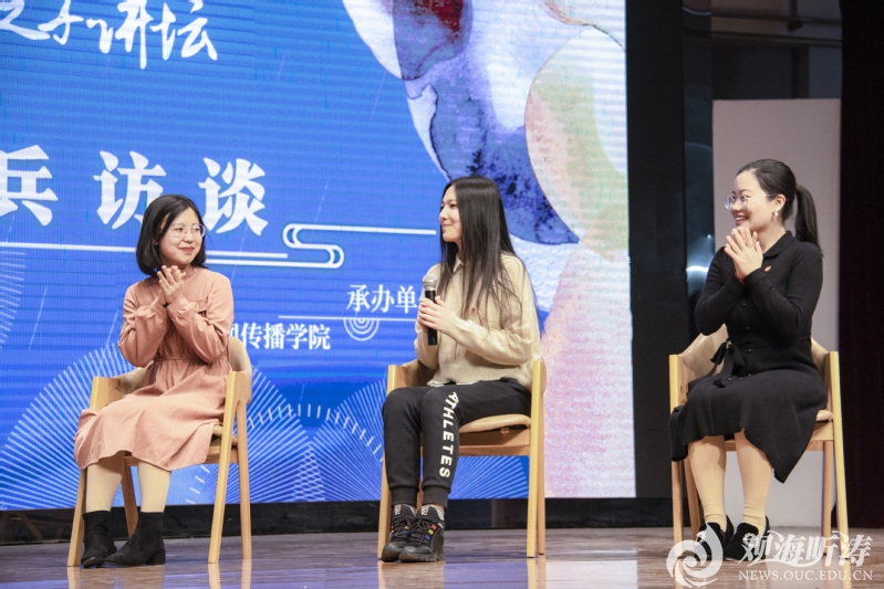 活动伊始,烟雨朦胧,如烟似雾,一袖素衣,妙曼婀娜。一舞《烟雨行舟》清新灵动,向我们展现了古典文化的深邃与美妙。在古典和学术相交融的氛围中,“海之子讲坛“——优秀学生标兵访谈拉开帷幕。