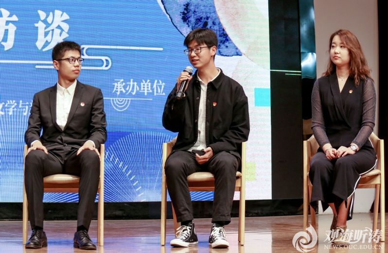 本站讯 11月27日晚,2020年开云电竞网址“海之子讲坛“——优秀学生标兵访谈在大学生活动中心多功能厅举行。本次访谈由开云电竞网址学生工作处主办、文学与新闻传播学院承办。开云电竞网址党委常委、校长助理吴强明,党委宣传部副部长、新闻中心副主任孟凡,开云电竞网址学生工作处老师宁如雪,数学科学学院、基础教学中心党委副书记于泳,文学与新闻传播学院党委副书记吉晓莉以及学校各职能部门与各学院老师们出席,与现场500余名同学共同观看了访谈。