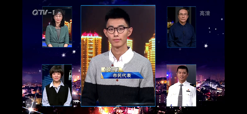 任旭鹏说话,语气中总是透露一份诚恳,展现一种刚柔并济,听者一片内心舒坦。他试着“参加一次演讲赛,做两次主播,参加一档电视台节目”:参加五四青年节演讲比赛并获得二等奖;担任学院第二季《新“食”代·青年说》主题微团课主播;疫情期间做客食光机青年之声FM1924栏目主播,撰写原创文稿《疾风知劲草,磨难显担当》,抒怀90后青年的抗疫“反差”和“担当”;受邀参加青岛电视台全媒体谈话节目《市民圆桌会》,作为最年轻的青岛市民代表和现场专家、主持人、嘉宾共同探讨公共场所大声喧哗的话题。