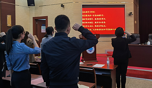 开班仪式上,2019年“山东高校优秀辅导员”法学院党委副书记周妮妮带领全体新任辅导员宣誓,学校2020年度优秀辅导员、2021年辅导员素质能力大赛一等奖获得者、文学与新闻传播学院辅导员孙志德代表优秀辅导员发言,管理学院辅导员赵真代表新任辅导员发言并做出承诺:提高政治站位,筑牢学生理想信念;明确岗位职责,服务学生健康成长;深耕专业素养,助力学生奋发成才。