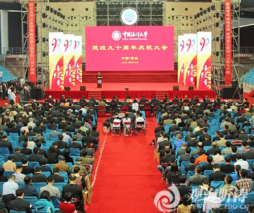 于志刚校长发表题为《为和谐海洋 育天下英才》的讲话:“……建校90年来、特别是山东海洋学院成立以来,学校始终以全方位服务国家海洋事业发展为己任;始终秉承‘教授高深学术,养成硕学宏材,应国家需要’的创校宗旨,以培养国家海洋事业领军人才和骨干力量为特殊使命,培育了10多万优秀人才。国家从来没有像今天这样重视海洋,海洋强国之梦也从来没有像今天这么临近和真切。作为国家‘985工程’重点建设的唯一海洋大学,学校唯有自强不息,勇于担当,才能不辱使命,再创辉煌。”
