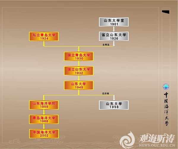 1958年10月,山东大学主体迁往济南后,以留在青岛的海洋系、水产系、地质系、生物系的海洋生物专业、物理系和化学系的部分教研组,以及数学、外语等直属教研组部分人员等为基础,经中共中央批准,于1959年3月成立了山东海洋学院,并列为教育部直属的重点综合性大学。由此,学校步入了在曲折中不断开创特色发展道路的历史新阶段。
