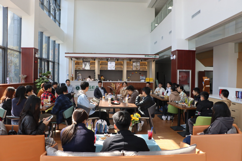 本站讯 3月30日下午,信息科学与工程学部第一期“导师下午茶”活动走进西海岸校区信息南楼咖啡厅,本活动旨在帮助信息学子深入了解专业,找准发展定位,合理规划未来,顺利成长成才。本期首先邀请到信息科学与工程学部部长董军宇教授围绕本科生人才培养、如何参与科研项目和国外留学经验三个方面与师生开展深入交流,辅导员代表和学生代表参加活动。