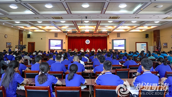 学校团委书记张欣泉主持仪式,科学技术处副处长宋欣、中国科学院海洋研究所综合管理处副处长王敏共同为高校科学营开云电竞网址分营、海洋科学专题营营员代表授旗。