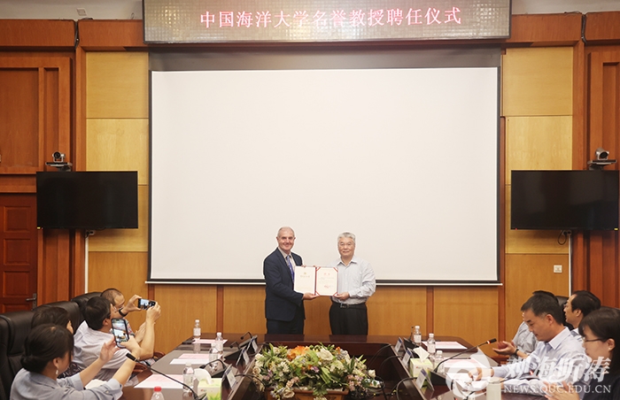 于志刚校长首先欢迎David J. Craik院士再次访问海大,对David J. Craik院士受聘学校名誉教授表示感谢。他表示,David J. Craik院士是国际著名的药物学家,在多肽科学研究领域成就斐然,具有很高的国际影响力。借此聘任仪式,希望David J. Craik院士能与海大医药学院在科学研究和人才培养等诸多方面,进一步深化合作与交流,在海洋药物的基础研究和产业应用领域做出更大贡献。