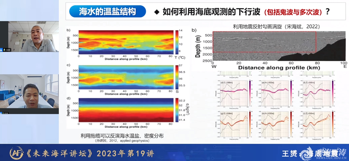 本站讯 9月22日,应未来海洋学院院长李建平教授和未来海洋学院导师何兵寿教授联合邀请,国家杰青、中国地质大学王赟教授做客“未来海洋讲坛”,作了题为“海底地震”的线上学术讲座。何兵寿教授主持讲座,包括未来海洋学院学员在内的1.4万余位听众参与了讲座。