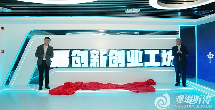 姚劲波校友(左)与于志刚校长(右)为58创新创业工坊揭牌