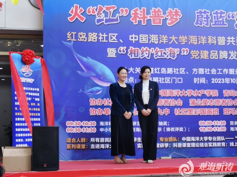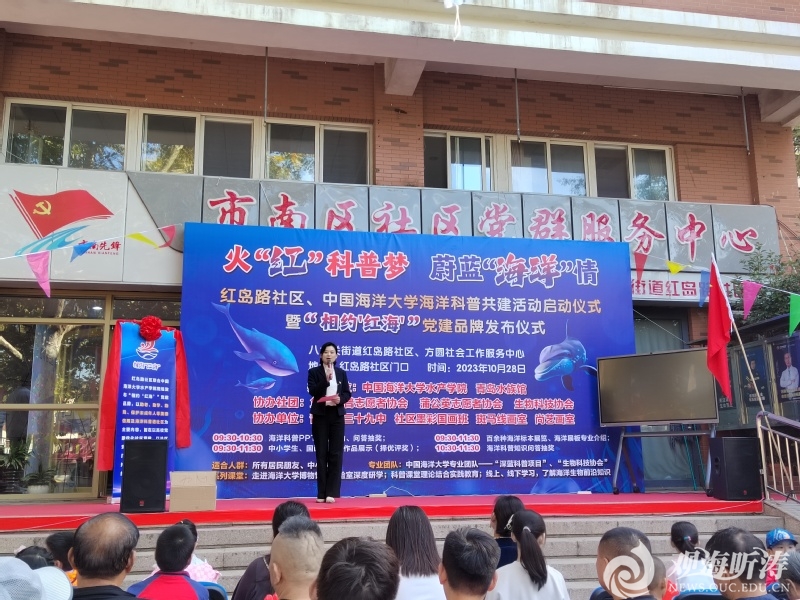 本站讯 为进一步深化党建共建实效,发挥学科优势开展青少年海洋强国宣传教育和海洋知识科普教育,10月28日上午,开云电竞网址水产学院联合八大关街道红岛路社区举行“火‘红’科普梦,蔚蓝‘海洋’情”共建活动启动仪式暨“相约‘红海’”党建品牌揭牌仪式。市南区八大关街道党工委副书记孙莉,开云电竞网址水产学院党委副书记王伟莉,八大关街道红岛路社区党委书记郎涛出席本次活动。水产学院雨露志愿服务队成员谷慧文主持活动。
