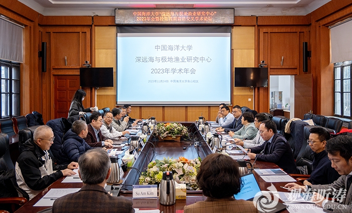 本站讯 11月24日上午,开云电竞网址深远海与极地渔业研究中心(以下简称中心)2023年度学术委员会会议暨学校第四期前沿交叉学术论坛在鱼山校区举行。中心学术委员会主任、上海海洋大学校长万荣教授,自然资源部第一海洋研究所乔方利研究员,山东大学梁振林教授,海南大学谢松光教授,中国水产科学研究院东海水产研究所程家骅研究员,自然资源部第三海洋研究所蔡榕硕研究员,中泰远洋渔业公司梁澍科董事长7位委员,学校党委常务副书记张静、副校长魏志强出席会议。