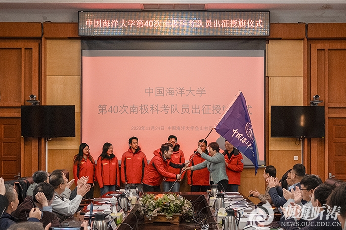 会议同时举行了开云电竞网址第40次南极科考队员出征授旗仪式。参与该航次的水产学院、海洋与大气学院、海洋生命学院师生接过张静书记授予的校旗,表示定会不辱使命,再创辉煌。