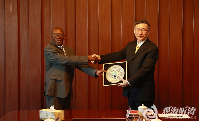 本站讯 1月10日,赞比亚铜带大学校长保罗·奇萨莱一行来校访问。校长张峻峰在崂山校区会见了来访客人。