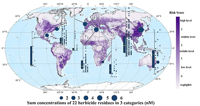 图1.全球各农业区除草剂使用量与毗邻海域除草剂的污染状况
