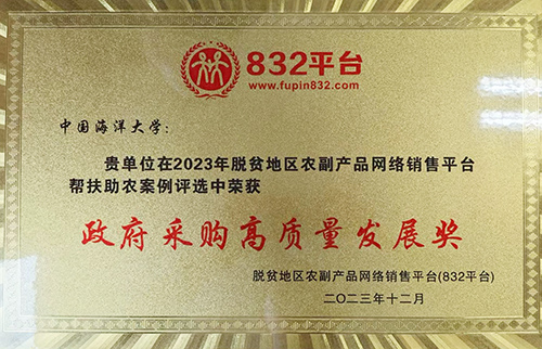 据悉,全国脱贫地区农副产品网络销售平台(“832平台”)是中国供销电子商务有限公司按照财政部、农业农村部、国家乡村振兴局、中华全国供销总社的有关要求建设运营的脱贫地区农副产品网络销售平台。平台每年组织消费帮扶助农评选表彰工作,学校已连续2年获评“政府采购高质量发展奖”。