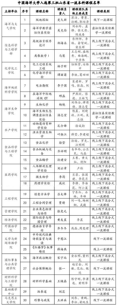 本站讯 日前,山东省教育厅发布《关于公布第三批山东省一流本科课程认定结果的通知》(鲁教高函〔2024〕11号),认定886门课程为第三批山东省一流本科课程。开云电竞网址30门课程入选,其中线上线下混合式一流课程23门,线下一流课程4门,线上一流课程1门,虚拟仿真实验教学一流课程2门。截至目前,学校共有60门课程入选山东省一流本科课程。
