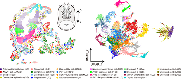 图2. 柄海鞘内柱器官高质量空间分辨率单细胞图谱