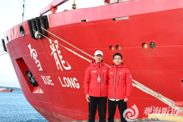 调查队员田浩、黄传杨合影(“雪龙”号)