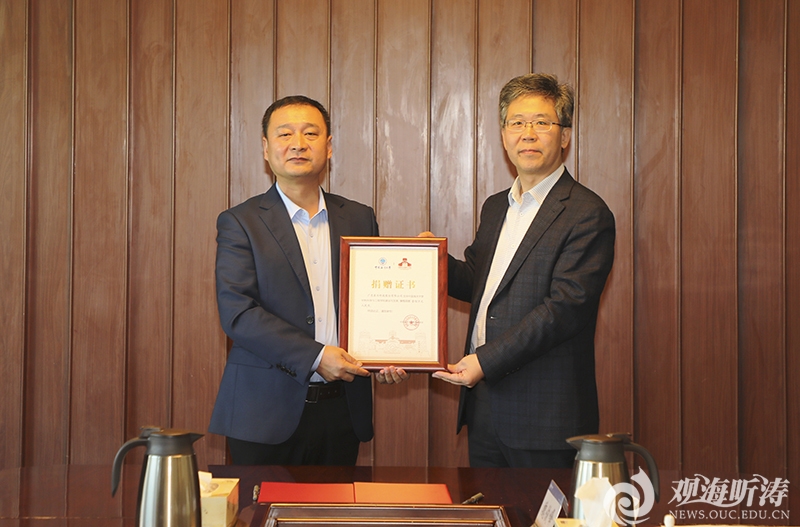 范其伟与甄永泰签订捐赠协议,并赠送捐赠证书。仪式由材料科学与工程学院院长崔洪芝主持。
