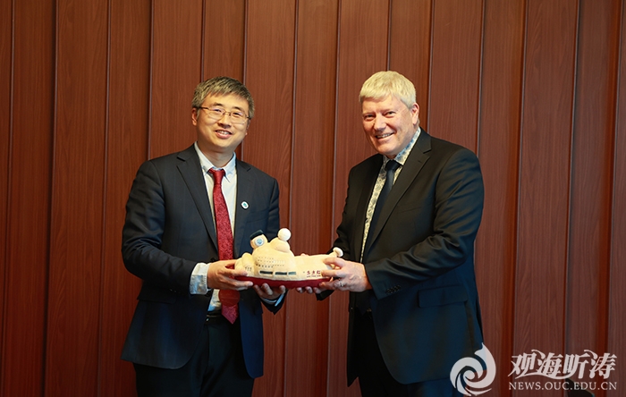 刘勇对加里·威尔逊一行来访表示欢迎,介绍了学校基本情况和特色优势,简要回顾了学校与怀卡托大学等新西兰高校的交流合作情况。他提出,希望双方进一步加强在海洋科学,尤其是在极地海洋学和海洋地质学,以及管理学等学科领域的人才联合培养和科研合作,探讨建立极地研究国际合作联合实验室,不断推动两校务实合作取得新成果。