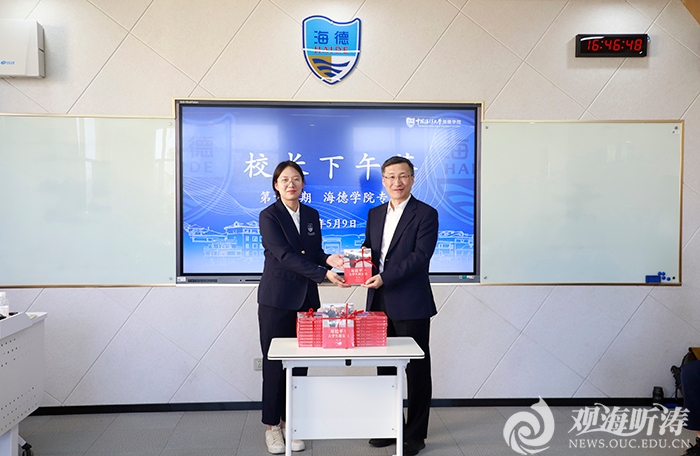 本站讯 5月9日,“海承己志 德启远航”第十七期“校长下午茶”活动走进海德学院,校长张峻峰与师生们共同围绕“国际化人才培养”展开交流。党委常委、副校长刘勇参加活动。