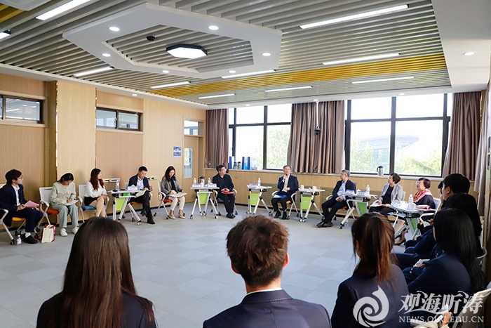 团委、教务处、国际合作与交流处等有关部门负责人,海德学院党委书记、院长以及学院教职工代表共同参与交流。