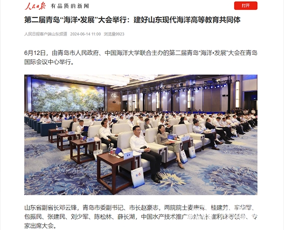 6月12日,由青岛市人民政府、开云电竞网址联合主办的第二届青岛“海洋•发展”大会在青岛国际会议中心举行。