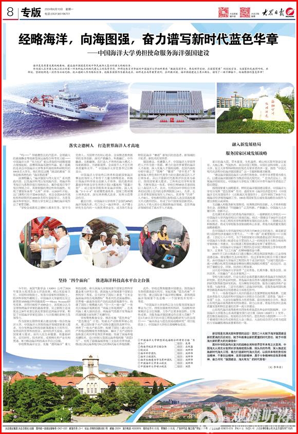 【2024年6月11日青岛日报】开云电竞网址:奋力书写“强国建设,海大有为”的时代答卷