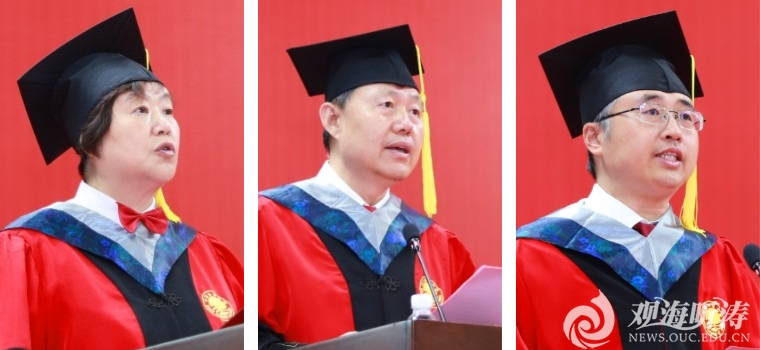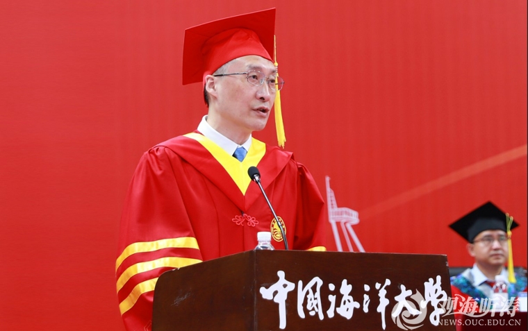张峻峰表示,在学校建校100周年之际,同学们即将开启新的征程。面向未来,希望同学们赓续世纪海大精神、勇担强国建设使命。要牢记创校宗旨,始终“应国家需要”,厚植家国情怀,夯实精神根基;要牢记价值追求,始终“崇尚学术”,追求真理,点亮人生智慧;要牢记校训精神,始终“取则行远”,脚踏实地,铸就进步阶梯。期待毕业生们从世纪海大的精神文化中源源不断地汲取奋进力量,勇敢接过强国建设、民族复兴的历史接力棒,一起弘扬海大精神,继往开来、踔厉奋发,共同为强国建设、民族复兴作出无愧于时代的新的更大贡献。
