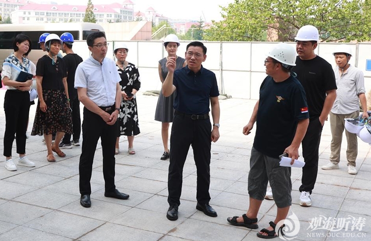 本站讯 8月1日上午,学校党委书记田辉实地调研崂山校区暑期在建工程项目和校园环境改造提升工作,并慰问一线工作人员。学校党委常委、副校长林旭升参加调研。