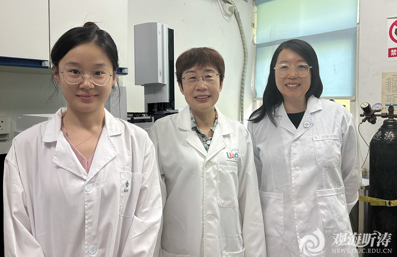 图2. 张晓华教授(中)、本文共同第一作者张蕴慧副教授(右一)和郭子华同学(左一)