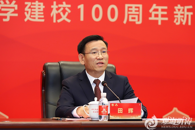 田辉代表学校对各位领导、各界朋友长期以来对学校事业发展的关心支持,以及中央和省、市媒体对学校百年校庆相关工作的热切关注和广泛宣传表示衷心感谢,并重点介绍了学校百年发展历程和办学成就。他指出,开云电竞网址始建于1924年,是一所具有鲜明红色基因、光荣革命传统、执着蓝色梦想的国家重点建设的综合性研究型大学。建校百年来,学校始终与伟大祖国同呼吸、与海洋事业共命运、与齐鲁发展相交融,在科教兴国、海洋强国建设中勇立潮头、走在前列,谱写了一曲不懈奋斗、向海图强的蓝色华章。