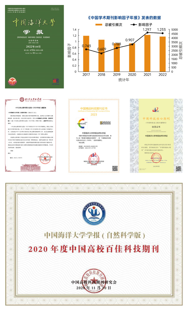 学报自然版立足海洋科学前沿,反映海洋领域的学术研究和科技创新,一直是CSCD来源期刊、北大核心期刊、中国科技核心期刊。据2023年中国科学技术信息研究所的评价,在海洋科学、水文学类期刊中,排名第三。曾多次被评为“中国高校百佳科技期刊”“中国精品科技期刊”等。