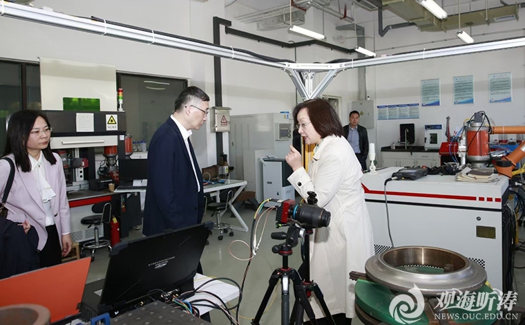 在听取材料科学与工程学院院长崔洪芝有关学院师资队伍建设、人才培养、学科平台建设、科研及服务社会、百年校庆筹备工作以及未来发展规划等方面的汇报后,张峻峰对学院近年发展和取得成绩表示肯定。他指出,材料学科对国家战略需求起到重要支撑作用,一流的材料学科是高水平大学的重要标志。在国内材料学科迅猛发展、竞争日益激烈的情况下,学院要坚持“四个面向”,进一步凝练学科发展方向,强化海洋特色、突出海洋优势,以特色融入主流;要加强人才队伍建设,加大人才引进力度,努力引进学科带头人,并做好青年教师的培养和支持工作;要坚持以工科思维建设学院,加强工程技术和实验队伍建设;要不断优化实验条件,加强高精尖设备配置,进一步强化办学条件支撑。