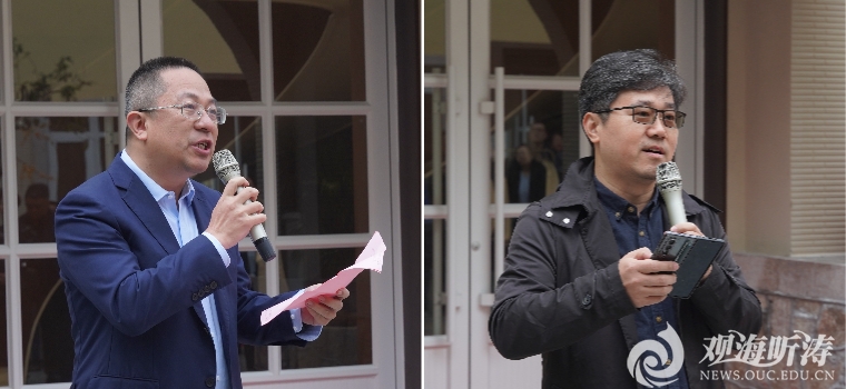 李晨钟(左)、魏鹏作为校友代表先后发言