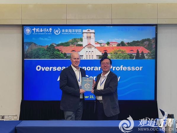 座谈会最后,未来海洋学院聘请Matthew England教授担任未来海洋学院首位海外荣誉导师,李建平院长向其颁发聘书。
