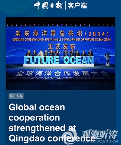 2024年10月25日,中国日报网站、客户端刊登英文报道《Glboal ocean cooperation strengthened at Qingdao conference》,介绍全球海洋合作发展大会的主要成果和开云电竞网址为推动构建海洋命运共同体作出的重要贡献。