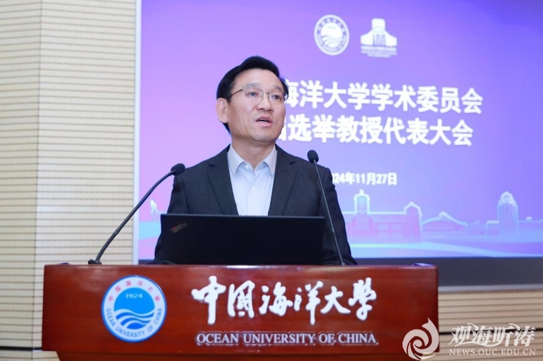 本站讯 11月27日上午,校学术委员会换届选举教授代表大会在崂山校区图书馆第二会议室召开。党委书记田辉出席大会并讲话,党委副书记、校长张峻峰,中国科学院院士、副校长吴立新,中国科学院院士宋微波,中国工程院院士包振民、薛长湖出席大会。副校长王厚杰主持大会。