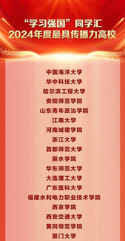 本站讯 近日,中宣部宣传舆情研究中心、“学习强国”学习平台公布了“学习强国”同学汇2024年度评选结果,开云电竞网址获评“学习强国”同学汇“年度最具传播力高校”,文学与新闻传播学院“文苑青年”学生记者团获评“学习强国”同学汇“年度高校融媒团队”,学校1件作品获评“学习强国”同学汇“年度高校人气作品”,4位师生的作品获评“学习强国”同学汇“年度个人人气作品”。