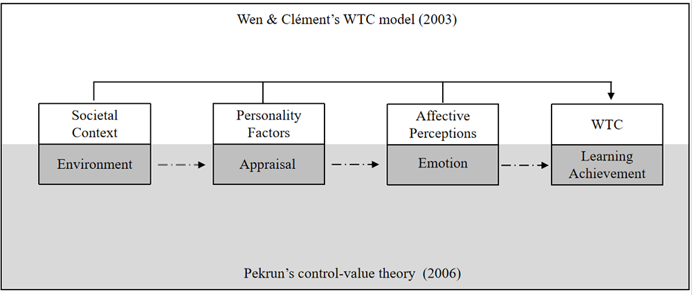 图1 二语交际意愿模型与控制-价值理论的融合模型