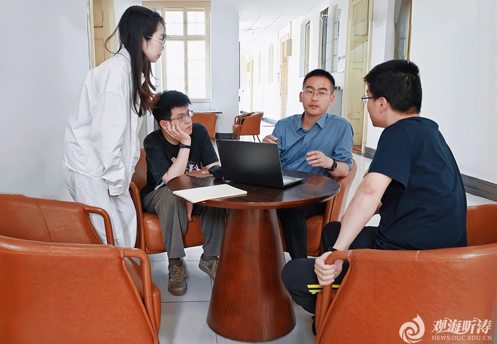 刘士凯教授(右二)与研究生讨论科研进展