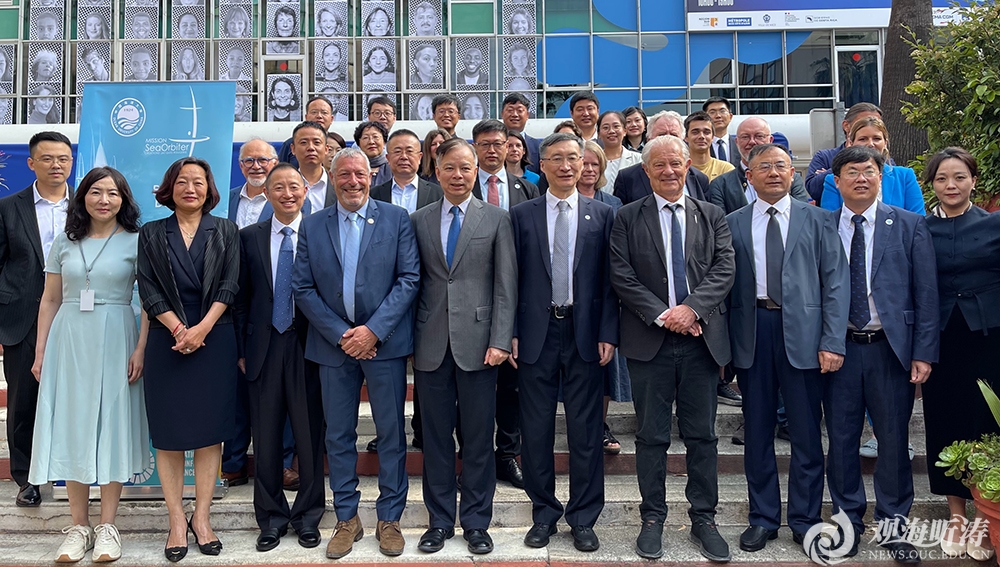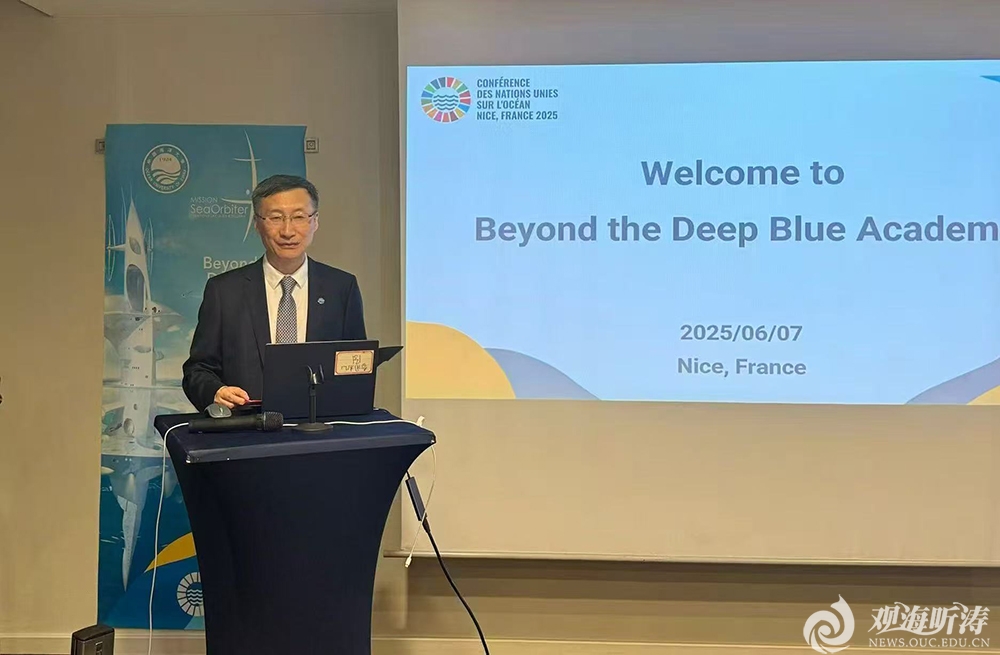 在第三届联合国海洋大会期间,为发挥引领作用提升我国在国际海洋科教领域影响力,学校与海洋空间站组织(Mission SeaOrbiter)联合举办“深蓝之上”主题边会。中国驻法兰西共和国大使馆公使陈力、海洋空间站项目创始人暨法兰西学院院士雅克·鲁热力(Jacques Rougerie)、青岛市海洋发展局局长孟庆胜等出席会议。