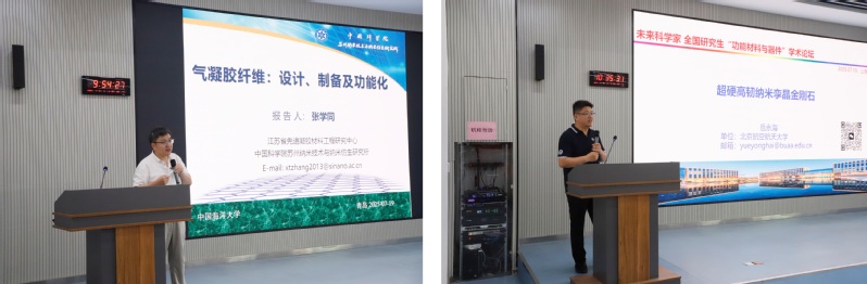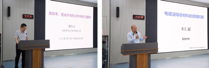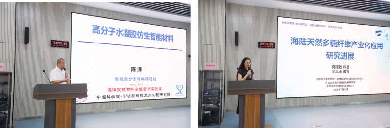 北京师范大学薄志山教授、复旦大学车仁超教授、中国科学院苏州纳米技术与纳米仿生研究所张学同研究员、北京航空航天大学岳永海教授、中国科学院宁波材料技术与工程研究所陈涛研究员、青岛大学全凤玉教授分别以“高效率、低成本有机光伏材料与器件”“电磁波吸收材料的微观机制”“气凝胶纤维:设计、制备及功能化”“超硬高韧纳米孪晶金刚石”“高分子水凝胶仿生智能材料”“海陆天然多糖纤维产业化应用研究进展”为题先后作报告,分享最新研究进展与宝贵经验,并与师生进行交流。