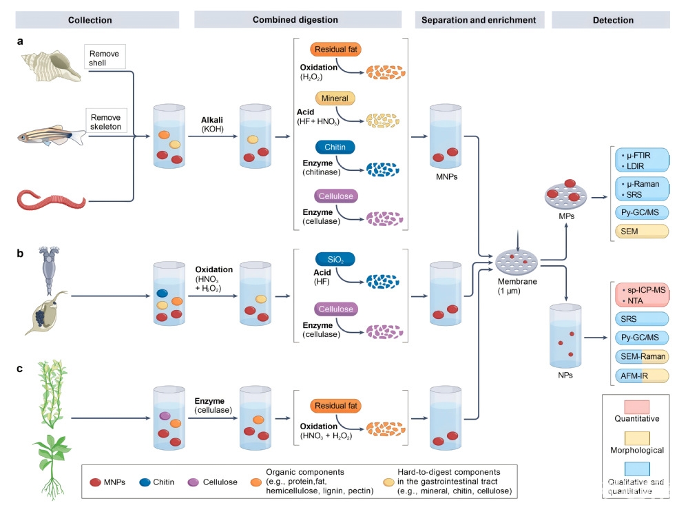 图1 不同类型生物中MNPs的消解、分离、富集和检测新策略