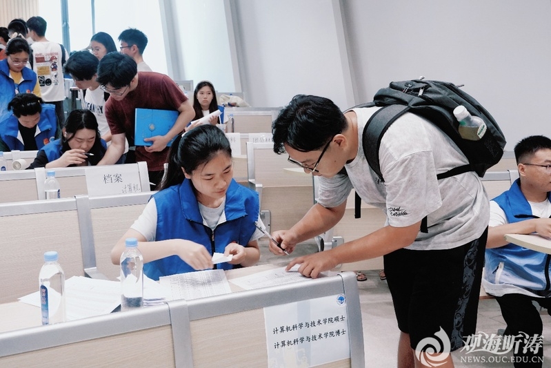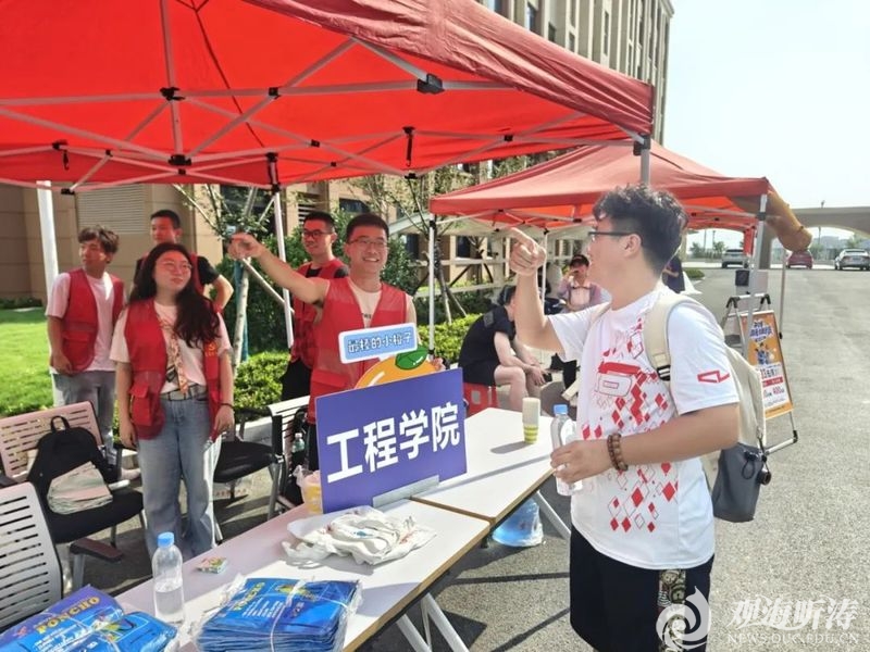 迎新现场,随处可见忙碌的迎新工作人员和志愿者,为新生便捷报到做好周全的准备和服务;学生工作处在崂山校区、鱼山校区和西海岸校区统一设立党员先锋服务岗,组织学生党员、入党积极分子等为新生及家长提供咨询、引导服务;研究生院细致周密组织新生注册和影像采集工作;保卫处优化迎新期间校园及周边交通保障方案,确保校内迎新现场交通顺畅;基本建设处利用暑假期间做好校园基础设施维护和宿舍楼整修;后勤保障处做好宿舍条件准备,保障迎新期间用水用电以及维修服务;网络与信息中心发挥信息化平台优势,帮助新生完成入校前线上“预报到”和现场信息核验及照片采集工作。