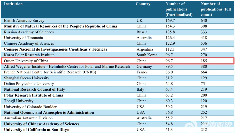 在优质期刊发表南极研究论文数量排名(2022年至2024年)