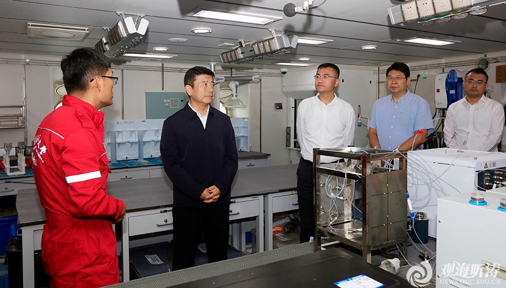 本站讯 10月10日,学校党委书记李明来到青岛奥帆基地码头,登上“东方红3”新型深远海综合科考实习船考察调研,并为本次科考航次送航。