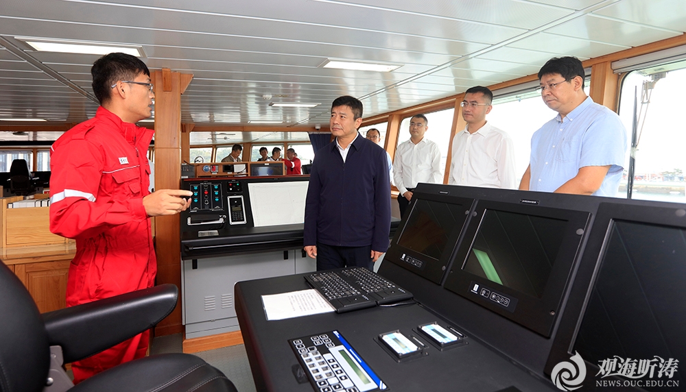 李明书记考察“东方红3”船驾驶舱