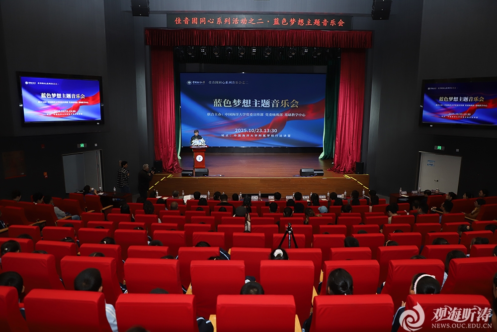 活动最后迎来原创歌曲《蓝色梦想》MV的正式发布。该作品由学校党委统战部创作,新闻中心制作完成,生动展现学校浩海求索、谋海济国的责任担当,汇聚胸怀蓝色梦想、堪当时代重任的奋进力量。演唱者以饱含深情的歌声,唱出了师生向海图强的坚定信念,将整场活动推向高潮。