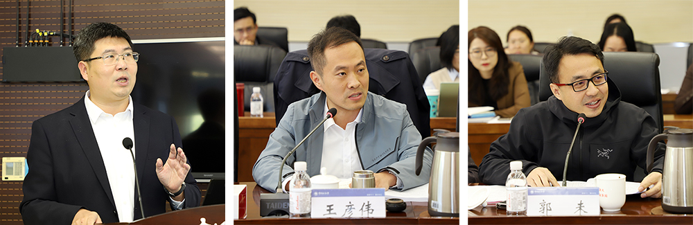 董跃处长(左)作汇报;评审专家王彦伟(中)、郭未(右)作点评
